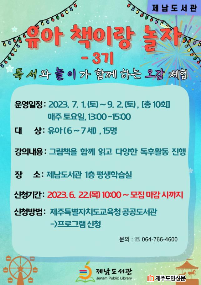 7 1() 9 2() Ͽ Ǹ (6~7) 1ú 3ñ Ѵ. û Ưġû (https://org.jje.go.kr/lib/index.jje) ܸ [α û] 6 22() 10ú ûϸ ûο 15̴.